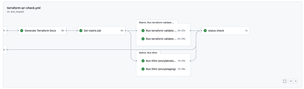 ... strategy: matrix: workdir: ${{fromJson(needs.set-matrix.outputs.workdir)}} steps: - name: Checkout uses: actions/checkout@v3 - name: Setup terraform uses: hashicorp/setup-terraform@v1 - name: Terraform plan working-directory: ${{ matrix.workdir }} run: terraform plan -input=false -no-color