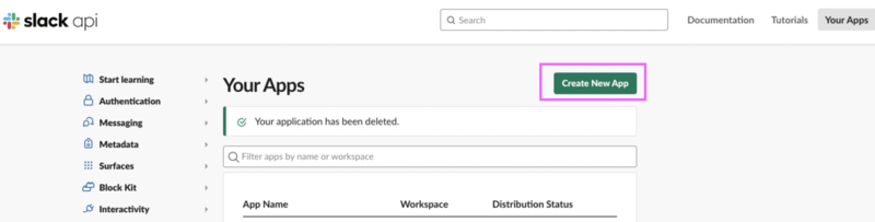 Slack Api にアクセスして Create New App を行います。