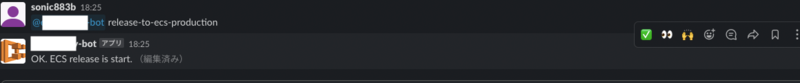 Retty のサービスでは主にAWS ECSを利用しており、リリース作業の際は Slack チャンネル上でメッセージを入力するとBot がデプロイを実行するというChatOps での運用を行っています。